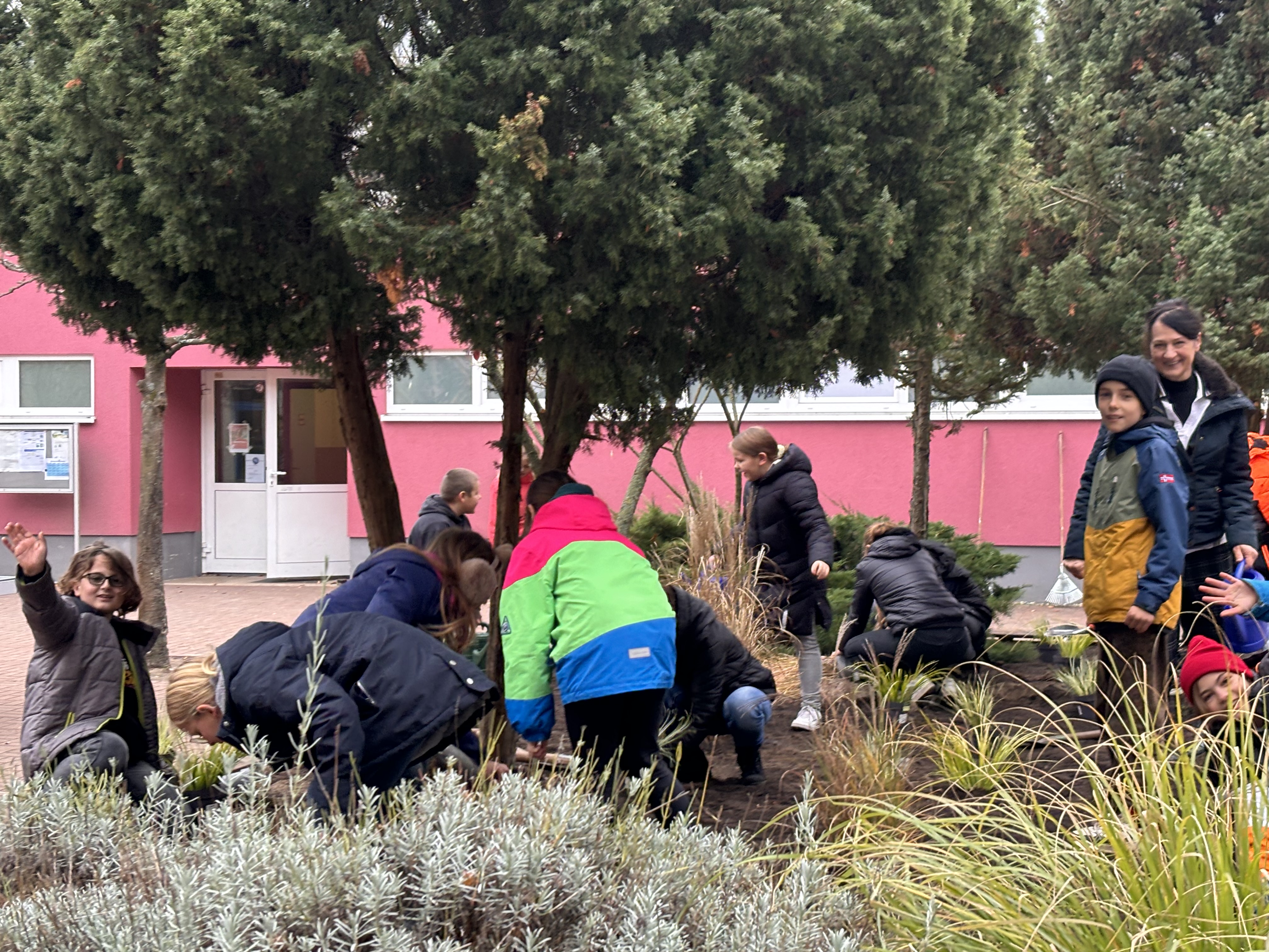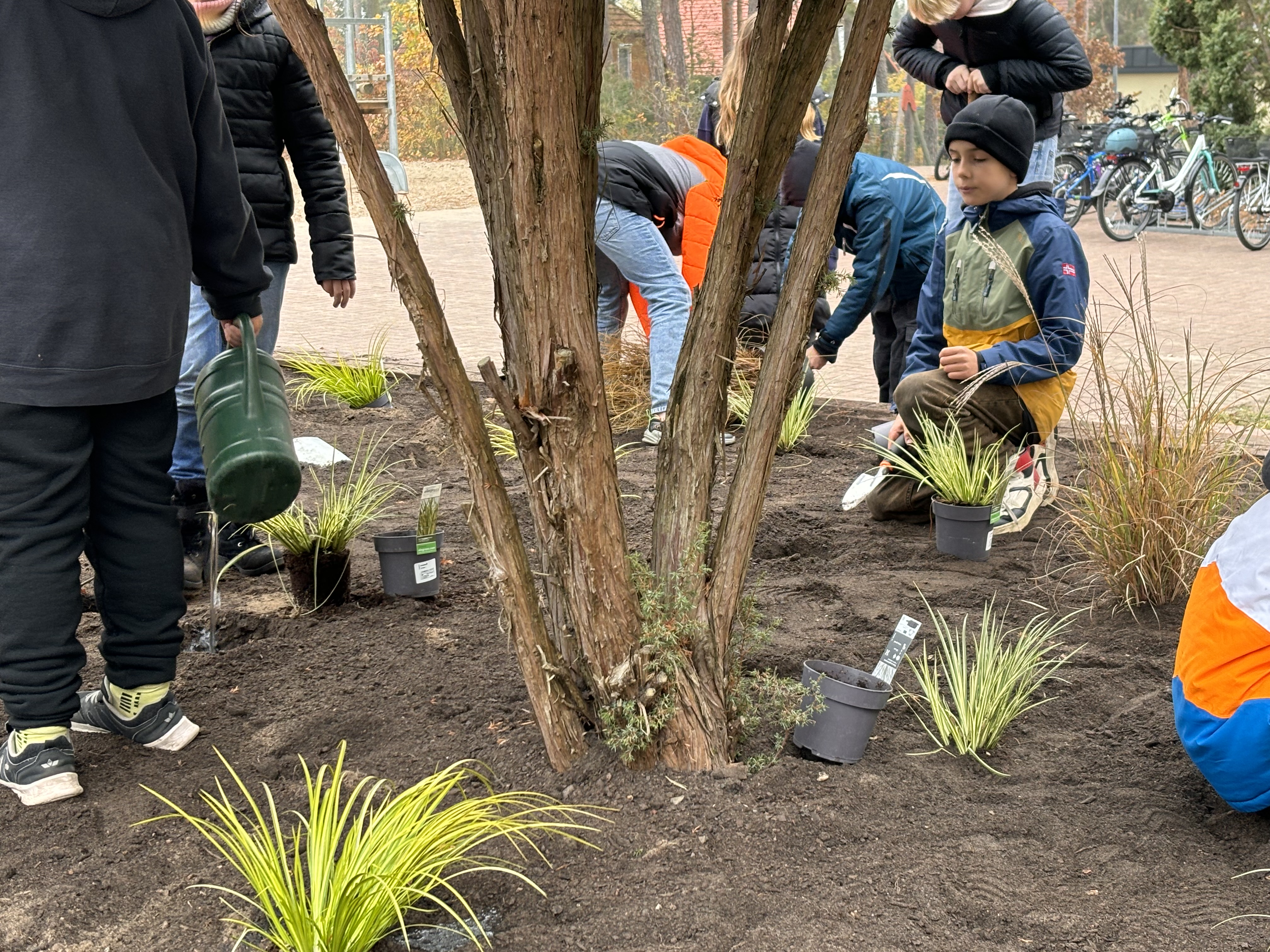Unsere Schülerinnen und Schüler waren begeistert dabei: Sie haben die Gräser und Blumenzwiebeln, die der Förderverein gesponsert hat, eigenhändig eingepflanzt. So haben sie nicht nur ihren Schulhof verschönert, sondern auch selbst zur Pflege der Natur beigetragen.