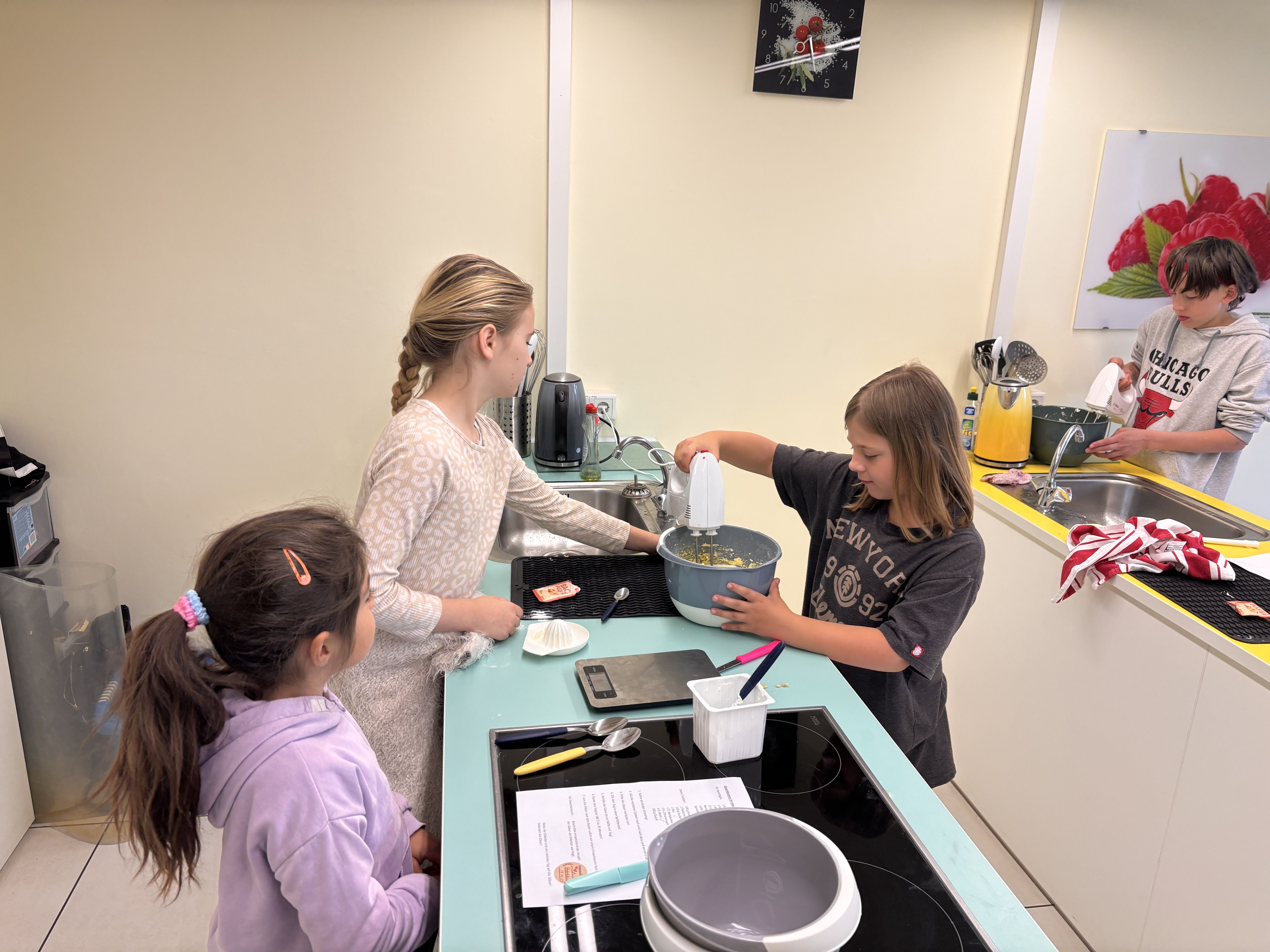 Am vergangenen Mittwoch verwandelte sich unsere Schule in ein buntes Küchenparadies: Unter dem Motto „Klasse kochen!“ fand unser gemeinsamer Projekttag rund ums Kochen, Backen und Genießen statt. Jede Klasse überlegte sich im Vorfeld kreative und leckere Beiträge für ein großes, gemeinsames Buffet – und das Ergebnis konnte sich sehen (und schmecken) lassen!