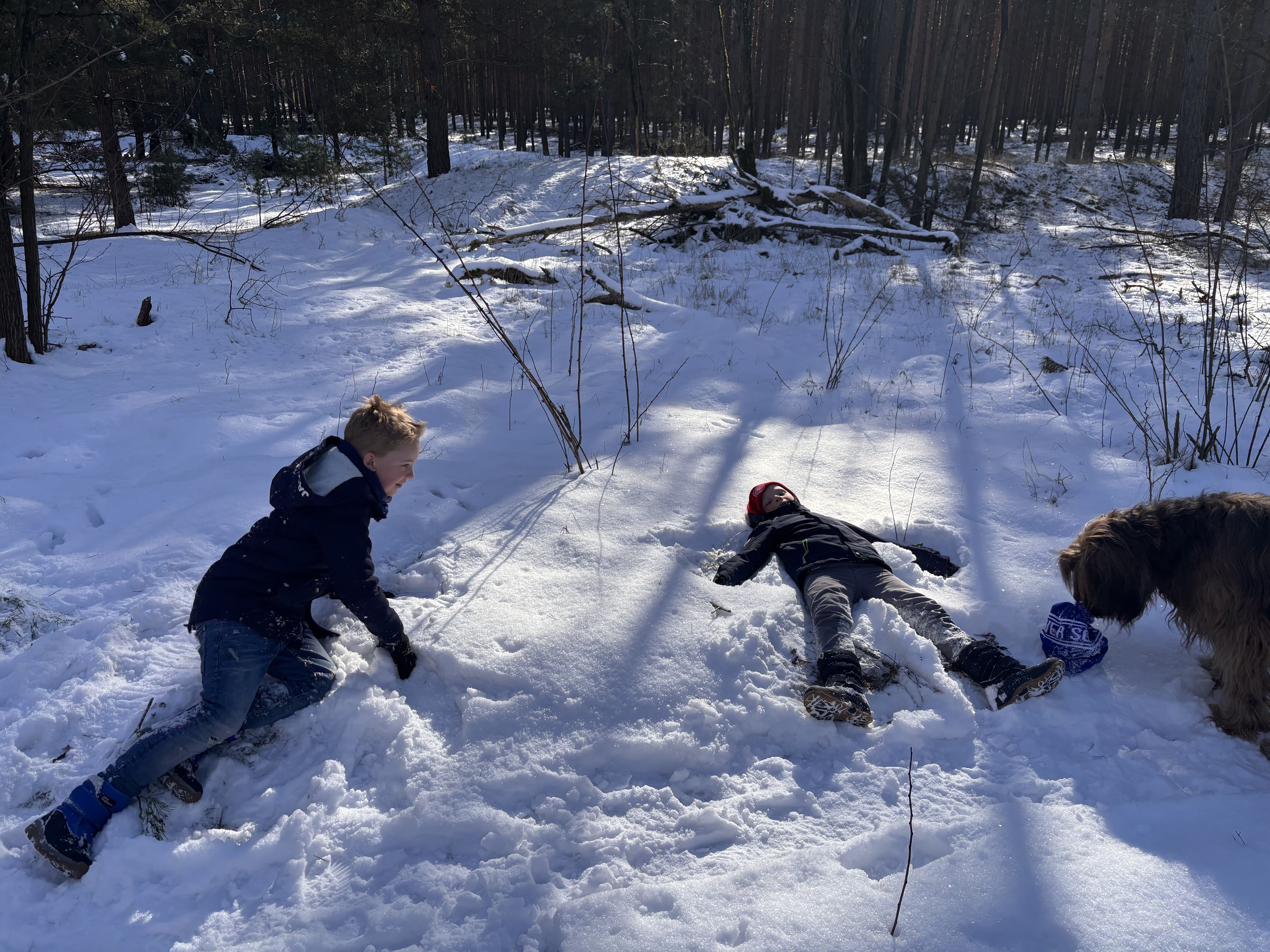 Ein kurzer Ausflug mit drei Hortkindern und Schulhund Liè wurde zu einem kleinen Winterabenteuer. Im verschneiten Wald genossen die Kinder den frischen Pulverschnee, machten Schneeengel und hatten sichtlich Spaß. Strahlende Kinderaugen und ein fröhlicher Hund waren ein perfekter Wintermoment!