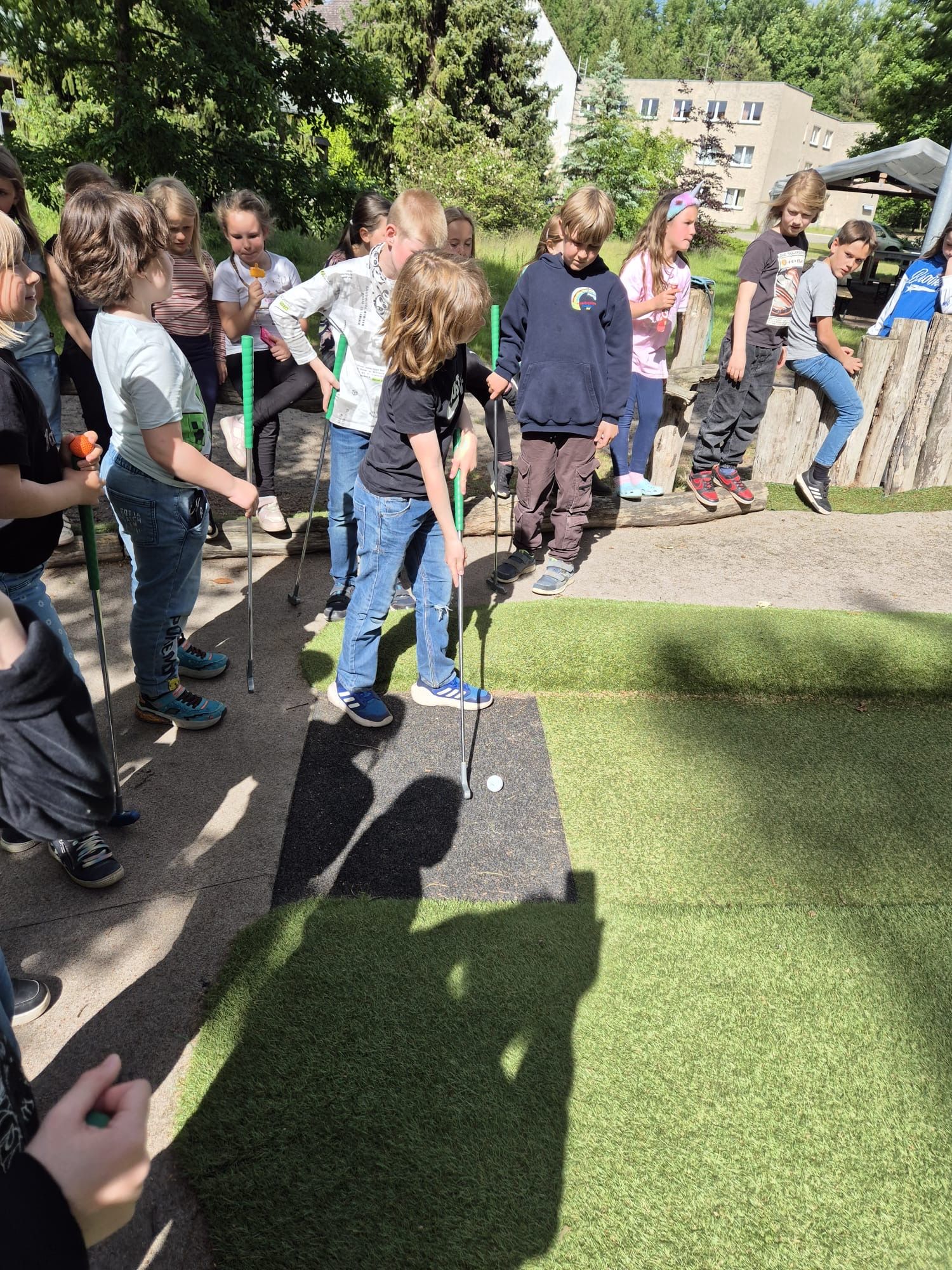 Wenn einer eine Reise tut, kann er was erzählen… Getreu dem Motto verlebten wir vom 26.5. bis 28.5. abwechslungsreiche Tage im KiEZ Hölzerner See. Bei einer KiEZ-Rallye lernten wir das Objekt kennen, bastelten in der Hobbybude mit Naturmaterialien und arbeiteten bei Waldspielen an unserem Miteinander. Sportlich aktiv ging es beim Minigolf, beim Toben am Strand und beim Volleyballspielen zu. Wer es ruhiger mochte, baute am Strand Kleckerburgen. Während es die Jungen immer wieder zum Fußballplatz zog, liebten die Mädchen ihre Bungalows. Zu den Höhepunkten gehörten die Disco und ohne Zweifel das „Geldausgeben“ in Ralfs Shop.