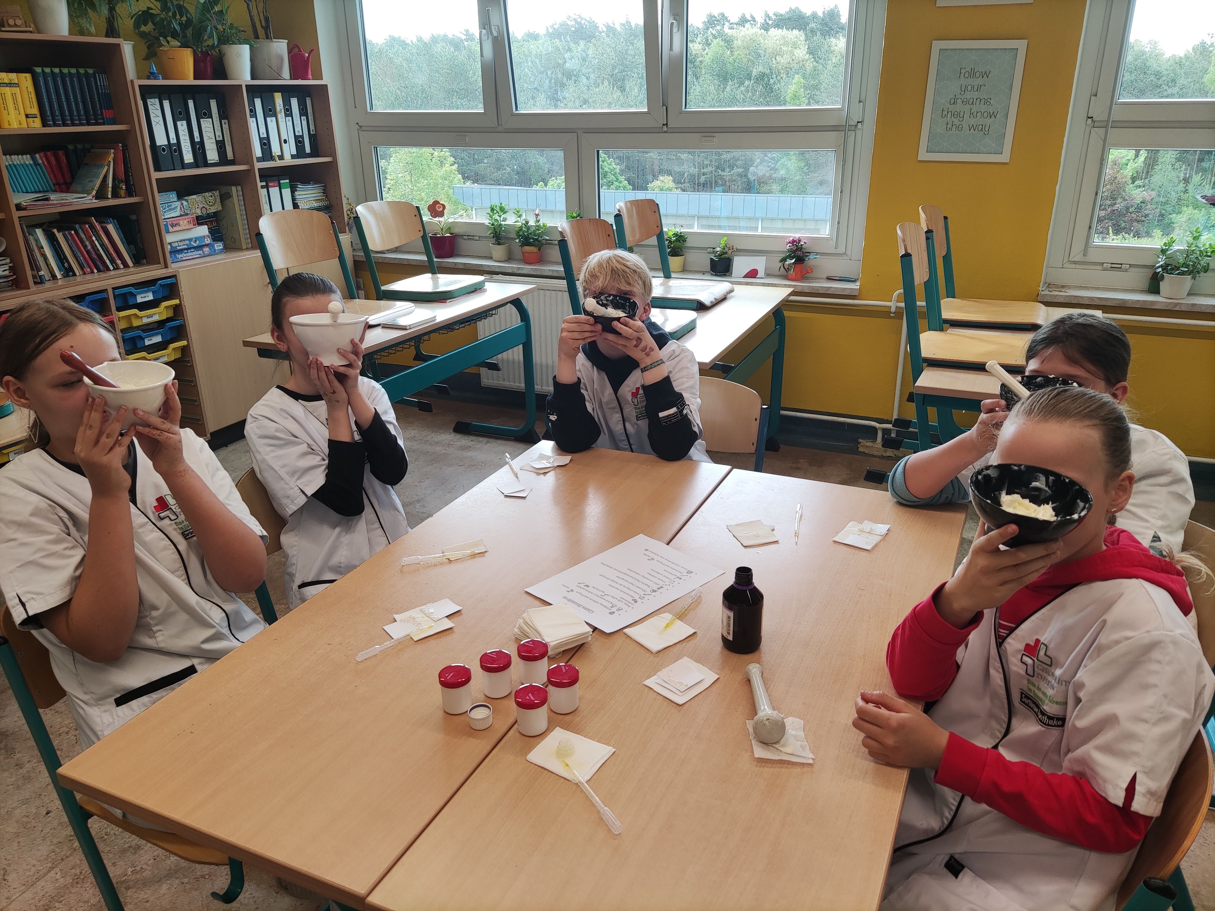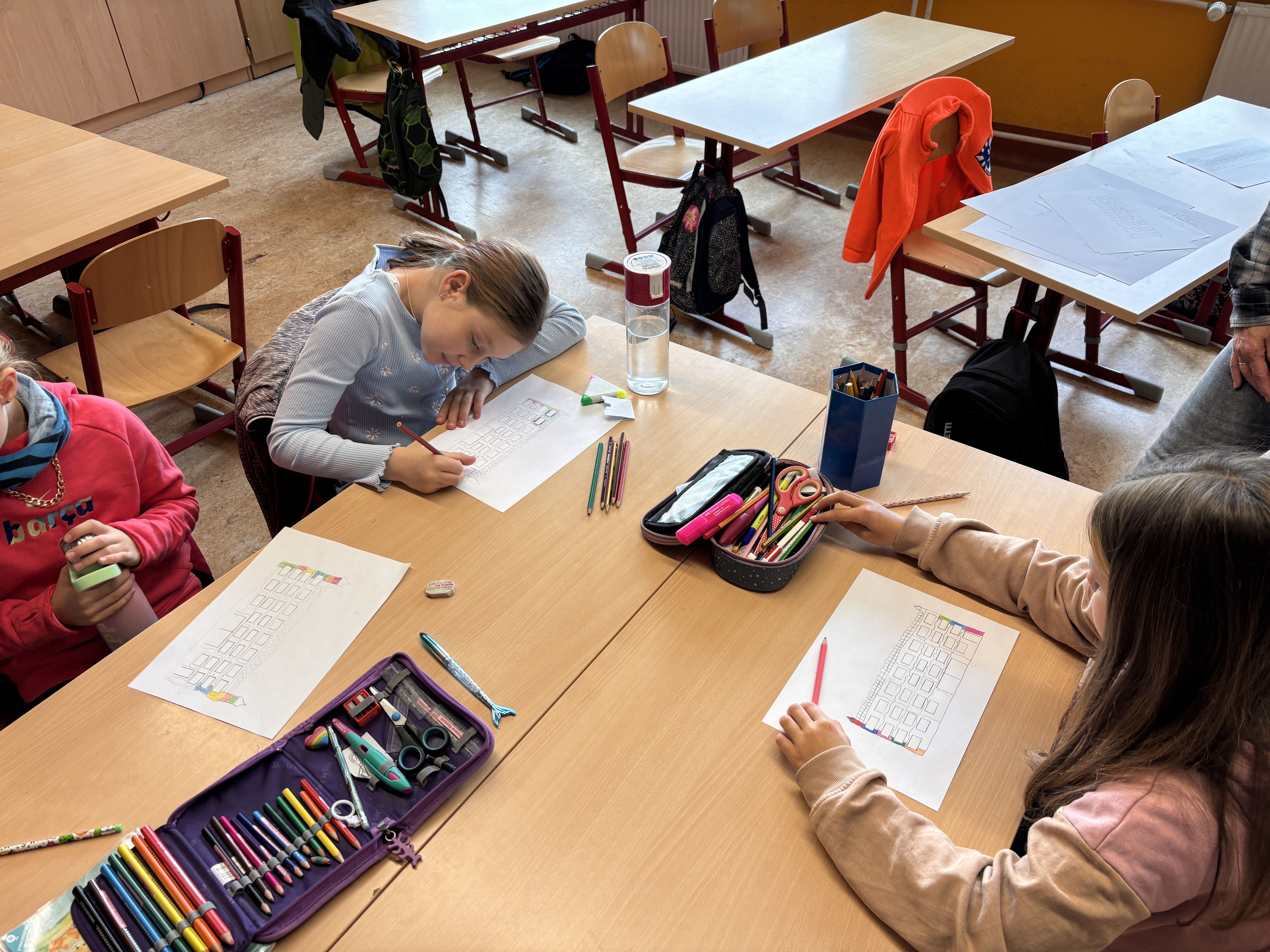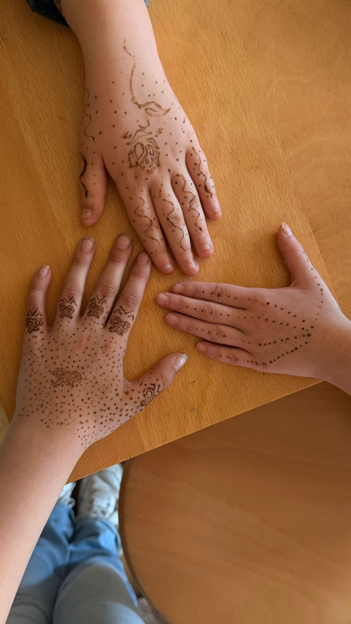 In der heutigen Doppelstunde Kunst (14.05.2025) wurde es kreativ und kulturell: Die Schülerinnen und Schüler der Klasse 5 der Naturparkschule Prieros setzten sich mit der traditionellen Henna-Kunst auseinander – natürlich mit Einwilligung der Eltern.