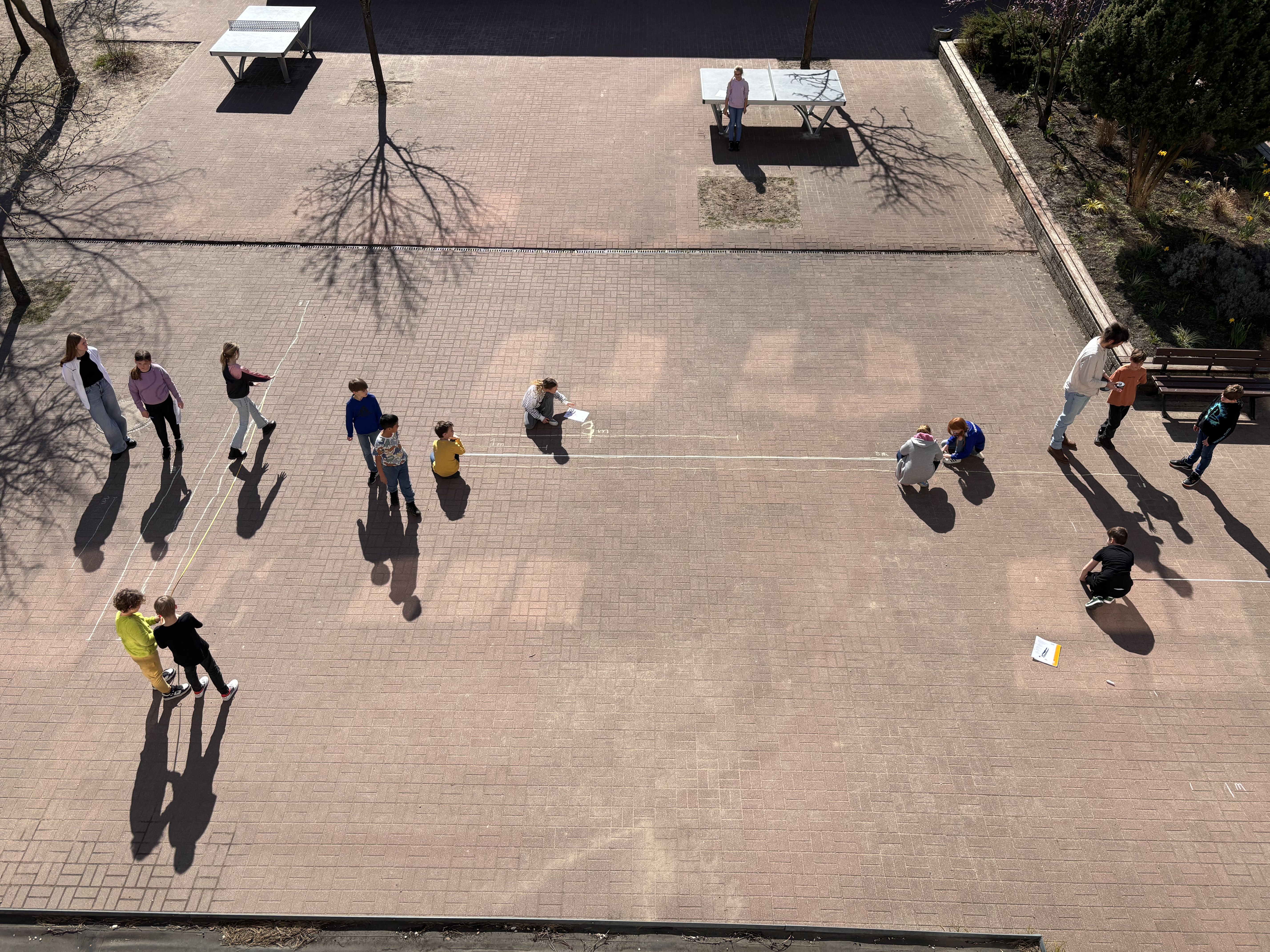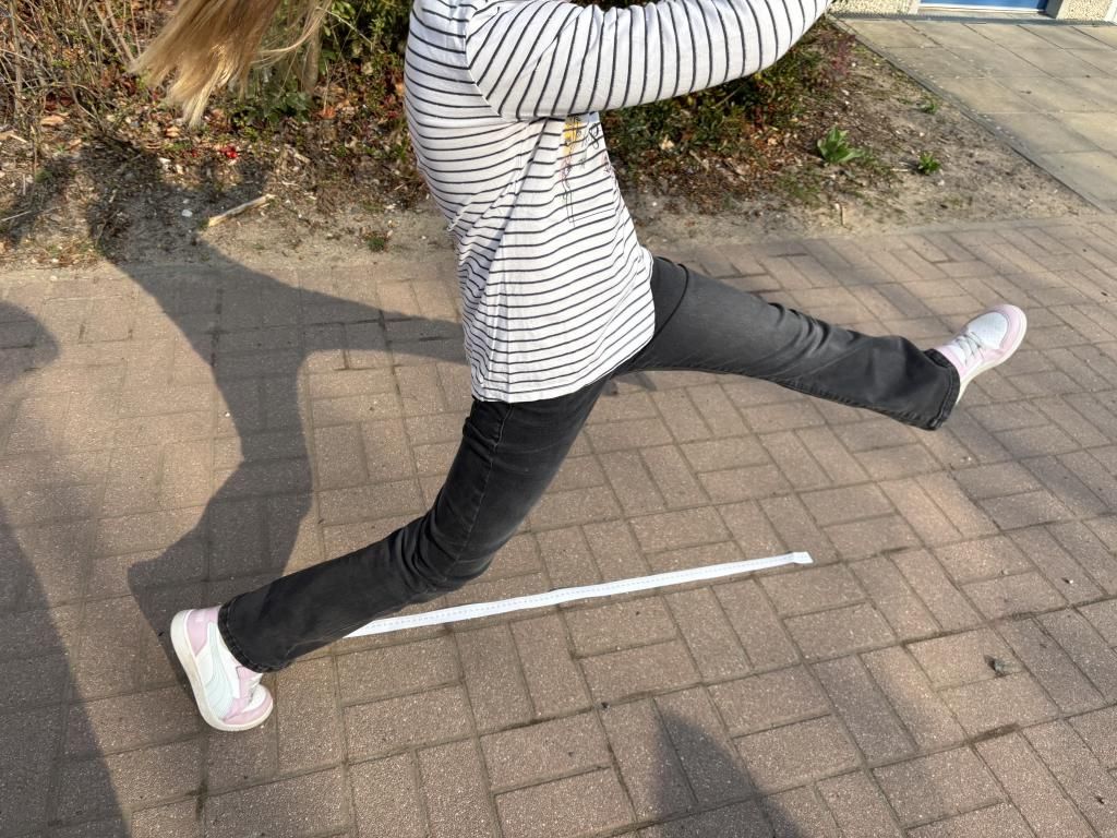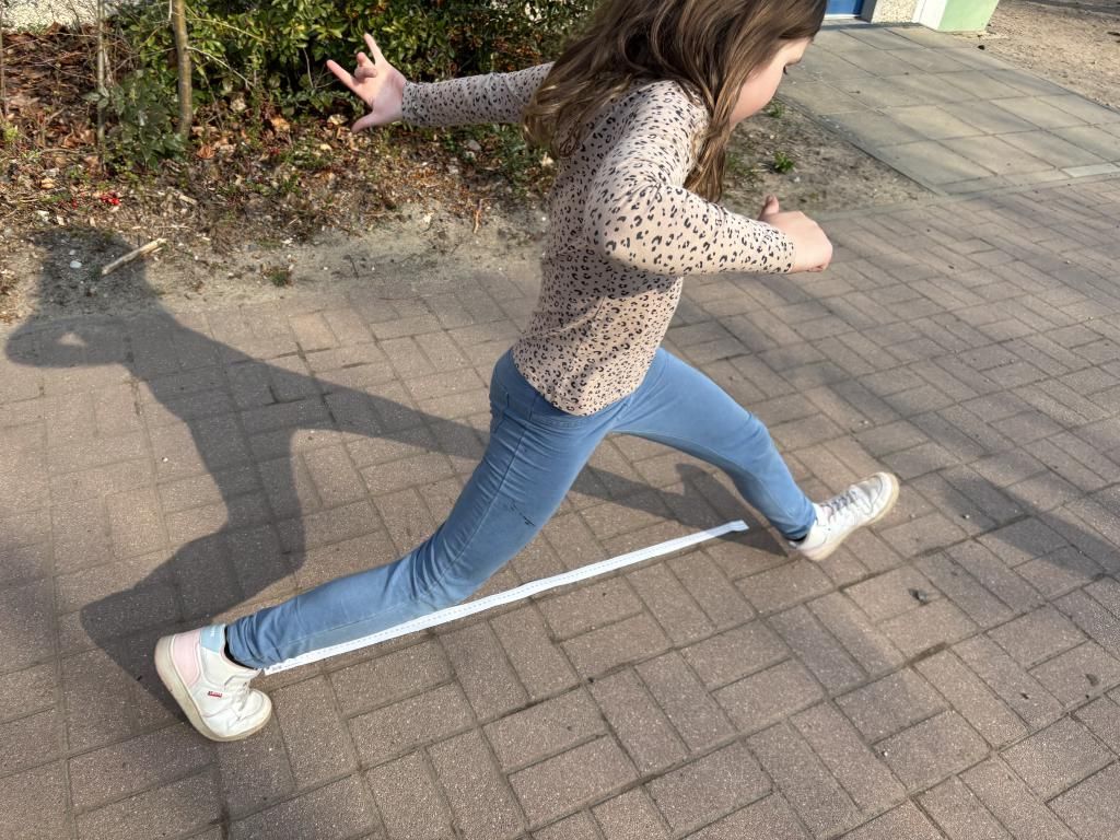 Mathematik in Bewegung! Nachdem wir uns gewogen und gemessen haben, wollten wir ein Gefühl für die Maßeinheit Meter bekommen. Wir haben auf dem Schulhof mithilfe von Maßbändern einen Meter ermittelt und sind Riesenschritte gelaufen.