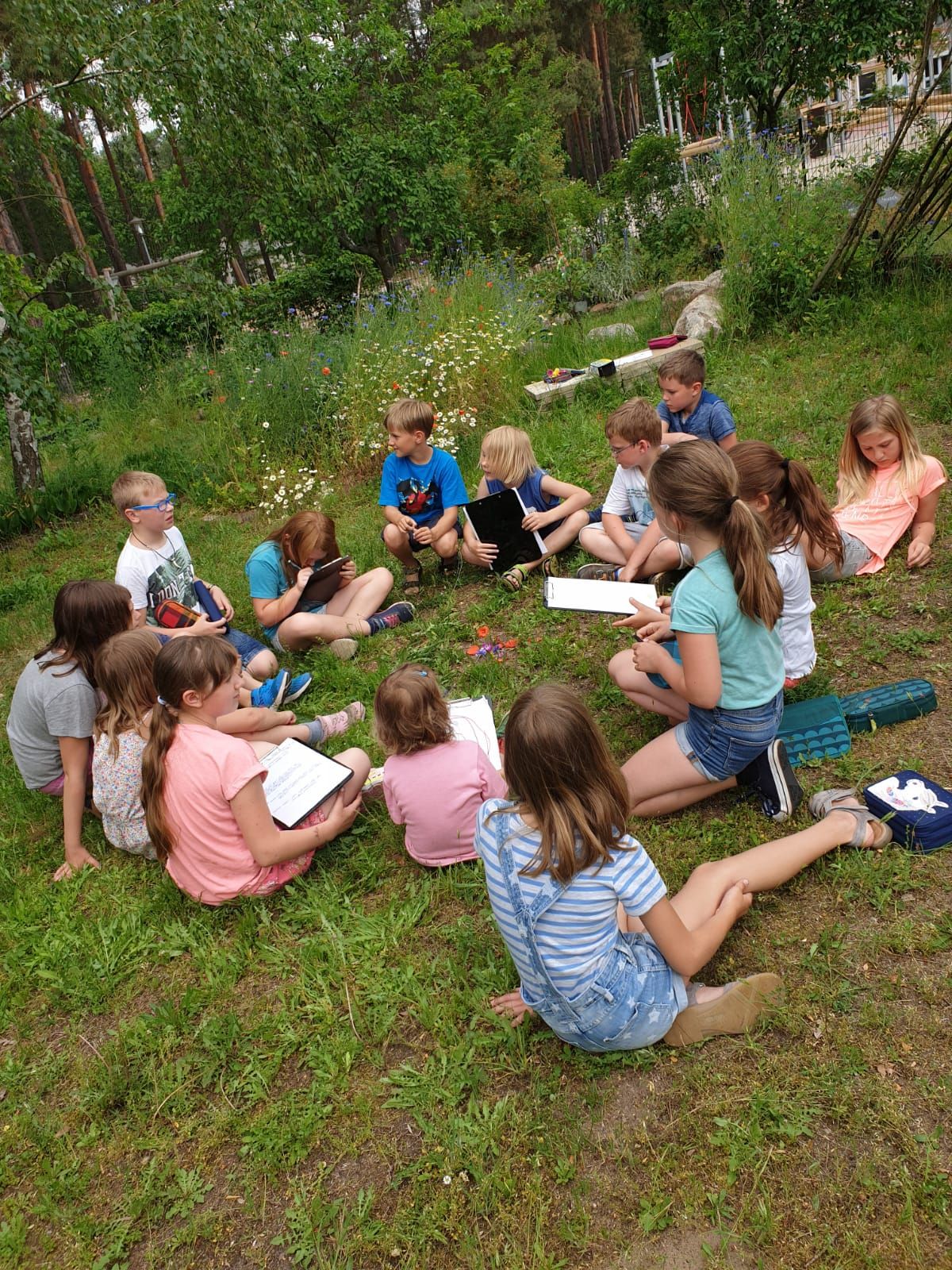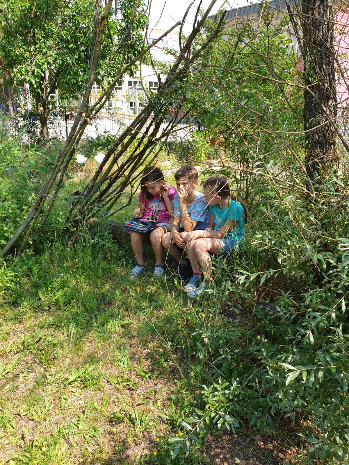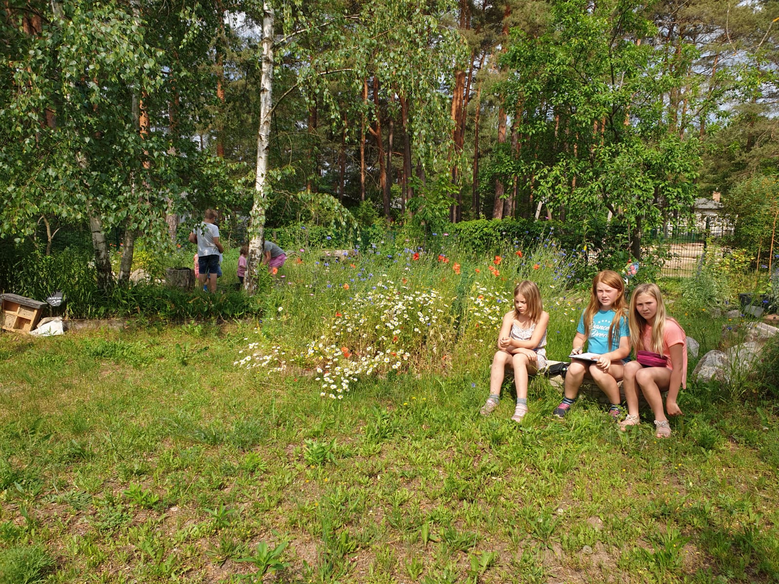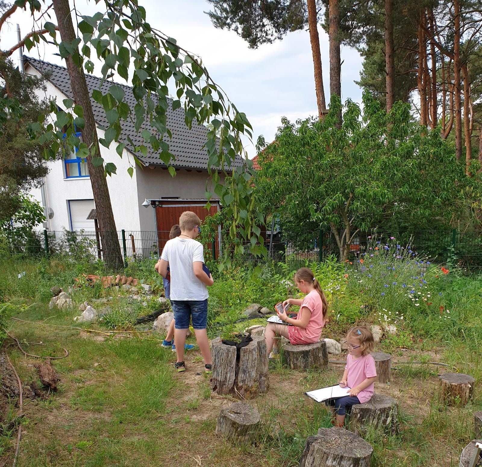 Programm: Wachstum und Knospen der Patenwildpflanzen feststellen, die eigenen Beete säubern, gießen und Natur Hotspots beobachten. Zeichenen und beschreiben von Teich, Trockenbeet, Sommerblumenrondell, kleinem Insektenhotel ... Zum Abschluss - gemeinsame Reflexion.